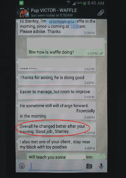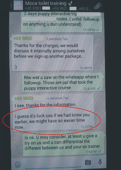 3. Another dog’s owner that engage a dog trainer to train he puppy before engaging us to train his 8-9 months old Moca again!