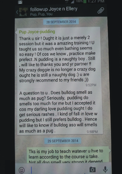 4. Owner had engaged another trainer 1 month ago for full package training but when asked about retrieving ball from dog’s mouth, toilet training and barking problems, owner was told to buy Anti Bark Collar from him! No definite answers or follow-ups were provided (happened in 2012). But we managed to solve these problems within a day!