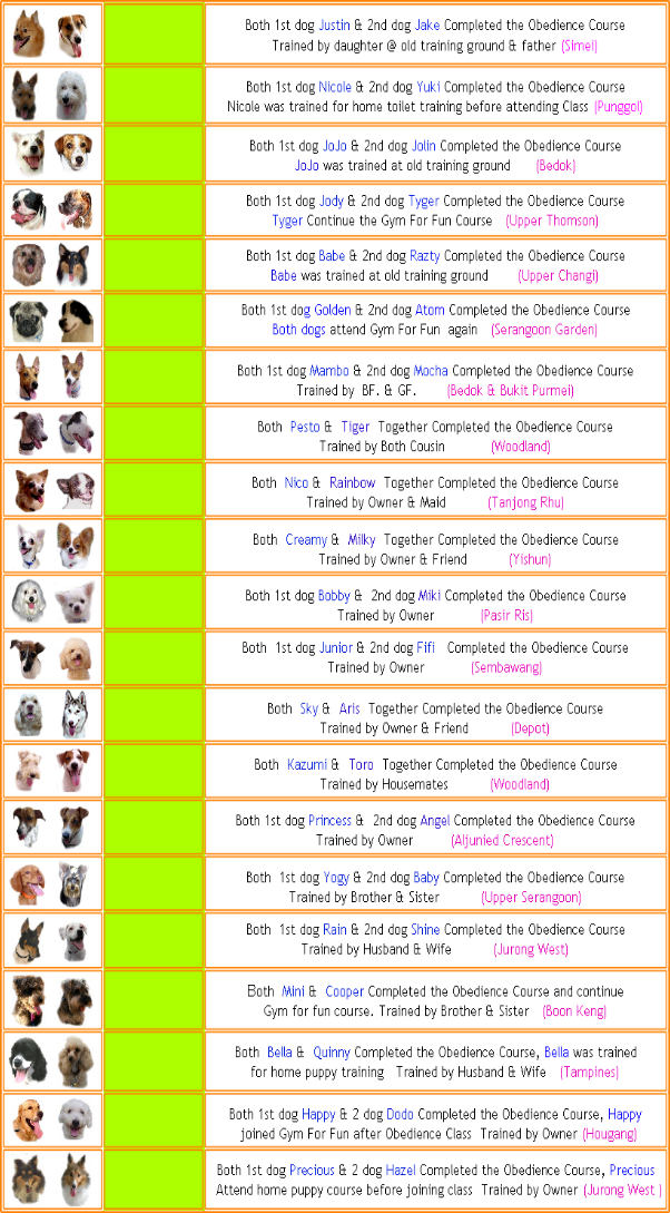 Our main ambassadors are our students, who understand how we work and will recommend our service to their friends and relatives. Jump to Client’s Satisfaction to see the owners who have engaged our services for their 2nd and 3rd dogs!
